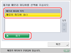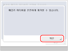 다음 절차에 따라 기기에서 메모리 미디어를 제거해야 합니다. 메모리 미디어를 아래 절차와는 다른 방법으로 기기에서 제거할 경우 메모리 미디어 및 기기가 손상될 수 있습니다.