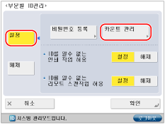 [설정] → [카운트 관리]를 누릅니다.