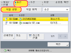 [송신] → [작업 상황]을 누릅니다.