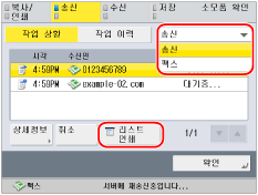 송신작업 리스트에는 팩스, 이메일, I-팩스 및 파일 서버 송신 리스트가 인쇄됩니다.
