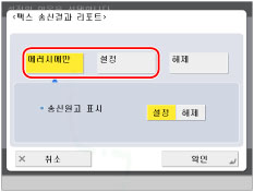 팩스 결과 리포트에서 송신된 문서의 일부만 인쇄하려면 <송신원고 표시>에서 [설정]을 누릅니다.