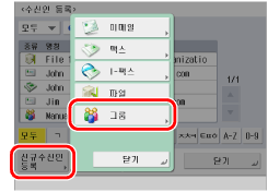 (설정/등록) → [수신인 설정] → [수신인 등록] → [신규수신인 등록] → [그룹]을 누릅니다.
