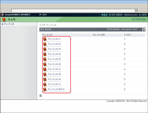 리모트 UI에 액세스한 후 → [주소록]을 클릭하고 → 주소 리스트 페이지에서 주소 리스트를 선택합니다.