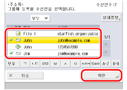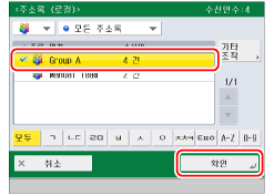 새로 등록한 수신인 [Group A]를 선택하고 → [확인]을 누릅니다.