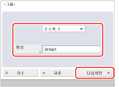 [명칭]을 누르고 → 새 그룹 이름을 'Group1'로 입력한 후 → [다음화면]을 누릅니다.