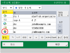 메인 메뉴 화면의 [스캔하여 송신] → [주소록]을 누르고 → 드롭다운 리스트에서 [