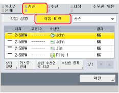 [상황확인/중지] → [송신] → [작업 이력]을 누르고 → 이메일이 성공적으로 송신되었는지 확인합니다.