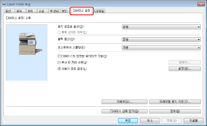프린터 드라이버 속성 대화 상자가 표시됩니다.