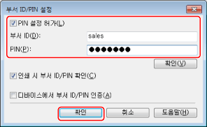 [부서 ID/PIN 설정] 대화 상자가 닫힙니다.