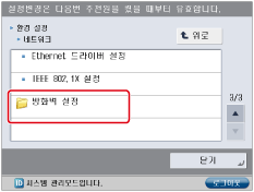 (설정/등록) → [환경 설정] → [네트워크] → [방화벽 설정]을 누릅니다.