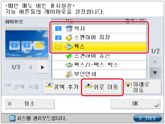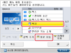 이 절에서는 메인 메뉴 화면에 [복사], [스캔하여 저장] 및 [팩스]의 순서로 세 가지 키를 표시하는 방법을 설명합니다.