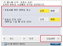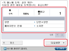 설정을 확인하고 → [다음화면]을 누릅니다.