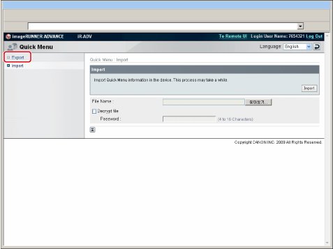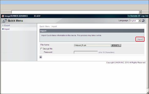 [Import]를 클릭하여 가져오기 페이지를 표시합니다.