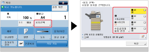 원고를 세트하는 방법은 "원고 세트."를 참고하십시오.