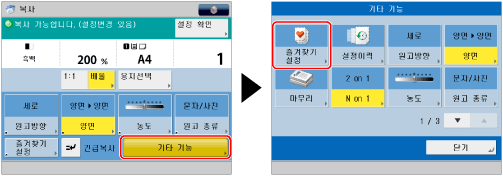 즐겨찾기 설정에 [양면] + [2 on 1]을 등록할 경우 화면이 아래와 같이 표시됩니다.