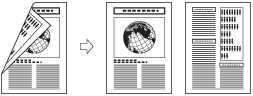 양면]을 사용할 때 원고의 페이지 수가 홀수인 경우 마지막 복사본의 뒷면은 공 페이지가 됩니다. (기기 카운터는 공 페이지를 복사본으로 카운트하지 않습니다.)원고를 원고대 위에 세트하여 [양면