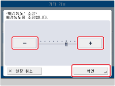 <배경 농도>로 [조정]을 눌러 배경 농도를 조정할 경우 [자동] 설정이 취소됩니다. 또한, [조정]에서 수동 조정하는 동안 [자동]을 누르면 조정이 취소됩니다. 기기에서 배경에 맞게 농도를 자동으로 조정합니다.