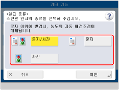 원고가 OHP 필름인 경우, 원고 종류를 선택하고 → 원고에 가장 적합한 레벨로 농도를 조절하십시오.