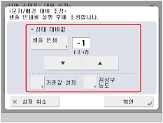 를 눌러 기준값을 조정하고 → [확인]을 누릅니다.|