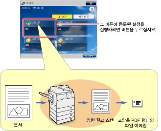 내 버튼/공유 버튼 등록에 대한 사항은 "내 버튼/공유 버튼 등록."에서 예제로 스캔하여 송신 기능을 사용한 설명을 참고하십시오.