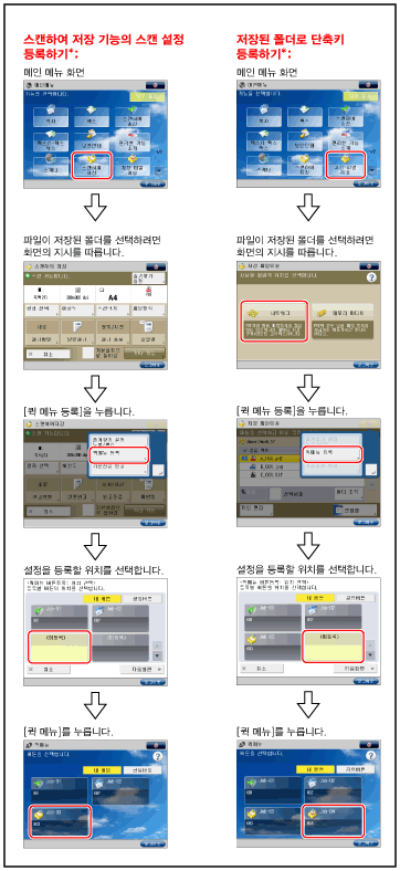 기본 설정은 '저장 설정'에 포함되지 않은 모든 [복사] 및 [스캔하여 송신] 기능 설정에 사용됩니다.