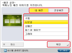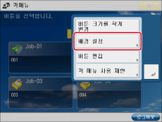 배경으로 설정할 버튼을 선택하고 → 배경 설정을 선택한 후 → [확인]을 누릅니다.