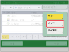 리모트 주소록 및 LDAP 서버를 둘 다 등록할 경우에만 [주소록 변경]이 나타납니다. 기기에 리모트 주소록만 등록된 경우에는 [리모트 주소록]이 표시됩니다.