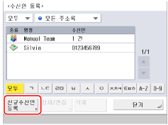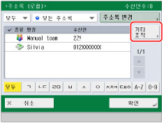 주소록 화면에서 [ㄱ], [ㄴㄷ] 및 [A~Z] 등과 같은 키를 누르면 이름에 대해 입력한 첫 번째 문자는 수신인 리스트를 정렬하는데 사용됩니다.