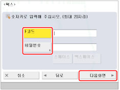 [F코드] 및 [비밀번호]를 입력하고 → [다음화면]을 누릅니다.