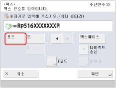 외부선 액세스 번호(위 예에서 'R')를 입력한 후 및 팩스 번호를 입력하기 전에 [포즈]를 누릅니다.