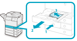 3. 용지 카세트가 닫힘 위치에서 찰칵 소리가 날 때까지 용지 카세트를 기기 안으로 부드럽게 밀어 넣습니다. |