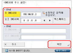 5단계에서 [DHCP]를 '설정'로 설정했을 경우 DHCP 서버에서 획득한 DNS 서버 IP 주소는 수동으로 설정한 IP 주소와 다르므로 설정한 IP 주소가 덮어쓰기 됩니다.