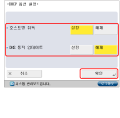5단계에서 [DHCP]를 '설정'으로 설정하면 수동으로 설정한 호스트명과 도메인명이 덮어쓰기됩니다.