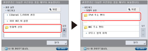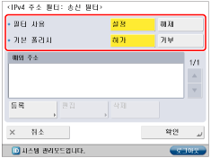 거부하도록 설정된 IPv4 주소를 사용하는 장치와, 기기 간에 데이터 송/수신이 시도될 경우 블럭 이력이 생성됩니다. 블럭 이력을 표시하려면 "블럭 이력 확인."을 참고하십시오.