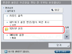 [위로] → [위로] → [TCP/IP 설정]을 누릅니다.