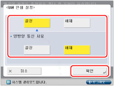 양방향 통신을 설정하려는 경우 <양방향 통신 사용>에 대해 [설정]을 누릅니다.