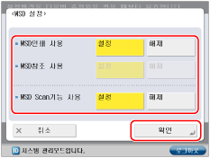 WSD 스캔 기능을 사용하려면 <WSD Scan기능 사용>에서 [설정]을 누릅니다. [HTTP 사용]은 [설정]을 선택한 경우 자동으로 '설정'으로 지정합니다. WSD 스캔 기능에 대한 자세한 내용은
