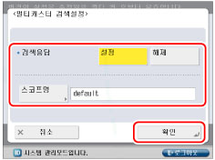 필요에 따라 스코프 이름을 설정합니다. [스코프명]을 누르고 → 멀티캐스트 검색에 사용할 스코프명을 입력한 후 → [확인]을 누릅니다.