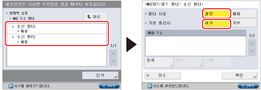데이터 송/수신을 허용할 MAC 주소를 입력하고 → [확인]을 누릅니다.