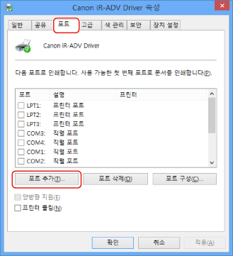 프린터 속성 대화상자에서 [포트 구성]을 클릭합니다.