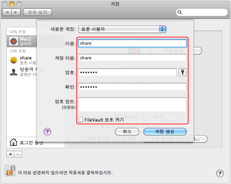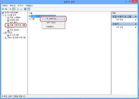 Active Directory 환경에서 사용자를 설정하는 절차는 위에 있는 절차와 다릅니다. 자세한 내용에 대해서는 Windows 설명서를 참고하십시오.