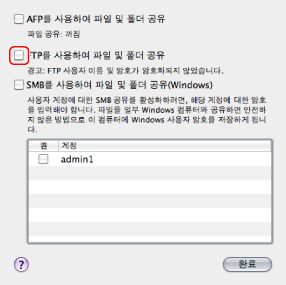 Windows XP Professional/Server 2003/Server 2008/Vista/7/Server 2008 R2/8/Server 2012를 FTP 서버로 사용하려면 IIS를 설치해야 합니다. 사용하는 컴퓨터에 IIS가 설치되어 있지 않으면 이 설정을 입력하기 전에 운영 체제에 맞는 IIS 버전을 설치해야 합니다. (See "데이터 송신.") 설치 절차에 대해서는 운영 체제에 동봉된 설명서를 참고하십시오.