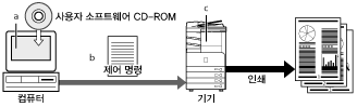 프린터 드라이버를 사용하여 인쇄할 데이터가 제어 명령으로 변환됩니다.