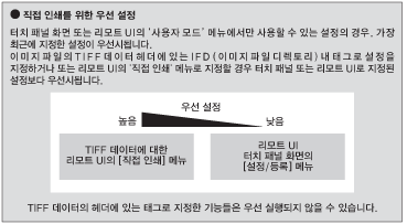 터치 패널 화면 또는 리모트 UI에서만 사용할 수 있는 설정의 경우, 가장 최근에 지정한 설정이 우선시됩니다.