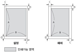 이 설정을 통해 A4 용지의 인쇄 가능 영역을 Letter 용지 폭의 인쇄 가능 영역으로 확대할지를 결정합니다.