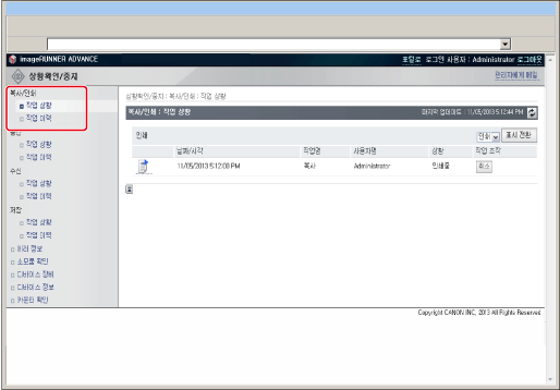 시스템 박스의 작업을 포함하여 로컬 인쇄 작업 이력을 표시합니다.