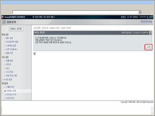 [리모트 셧다운] → [시작]을 클릭합니다.