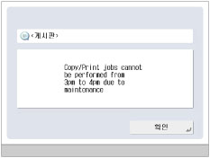 이 게시판이 표시되면 기기를 조작할 수 없습니다. 게시판은 기기의 동작을 일시적으로 중지하려는 경우 가장 적합합니다.