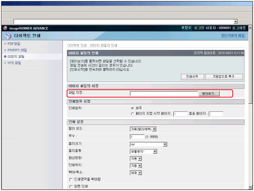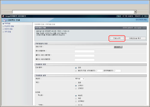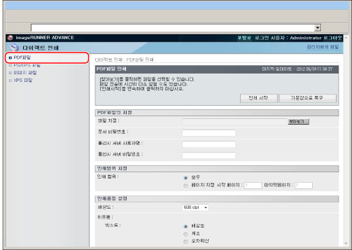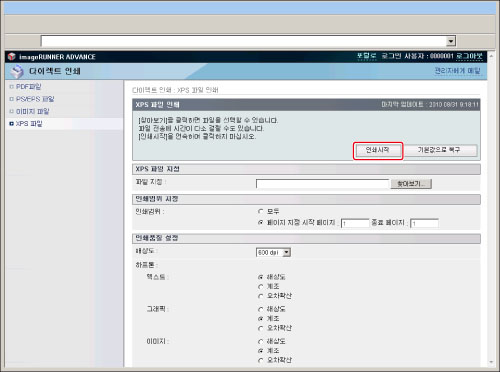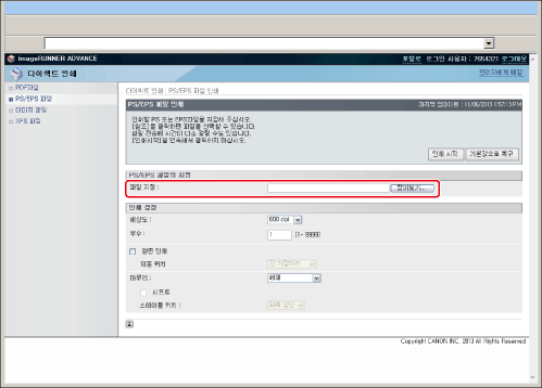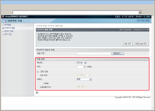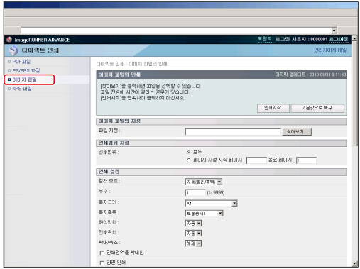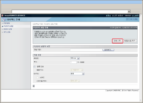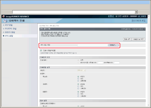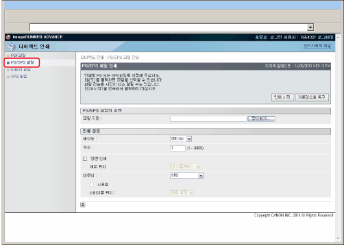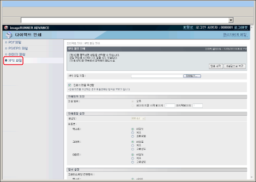 리모트 UI에서 직접 PS/EPS 파일을 인쇄하려면 PS Printer Kit를 활성화해야 합니다.