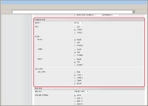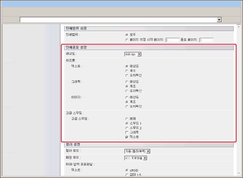 [고해상도]는 문자, 그래픽 및 이미지 데이터에 설정하지 않습니다.